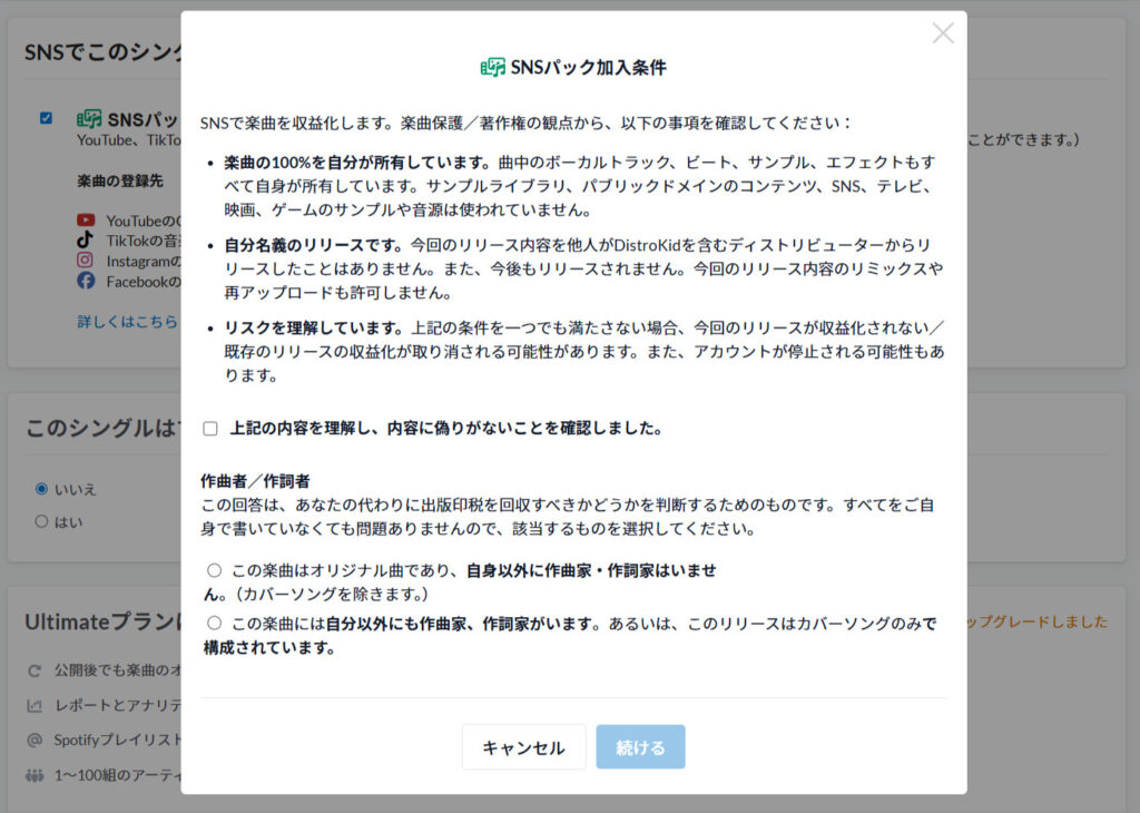 すべて確認し「続ける」を押せば設定完了です。あとはDistroKidが自動的にYouTubeのデータベースにあなたの曲を登録し、世界中から収益の回収を始めてくれます。