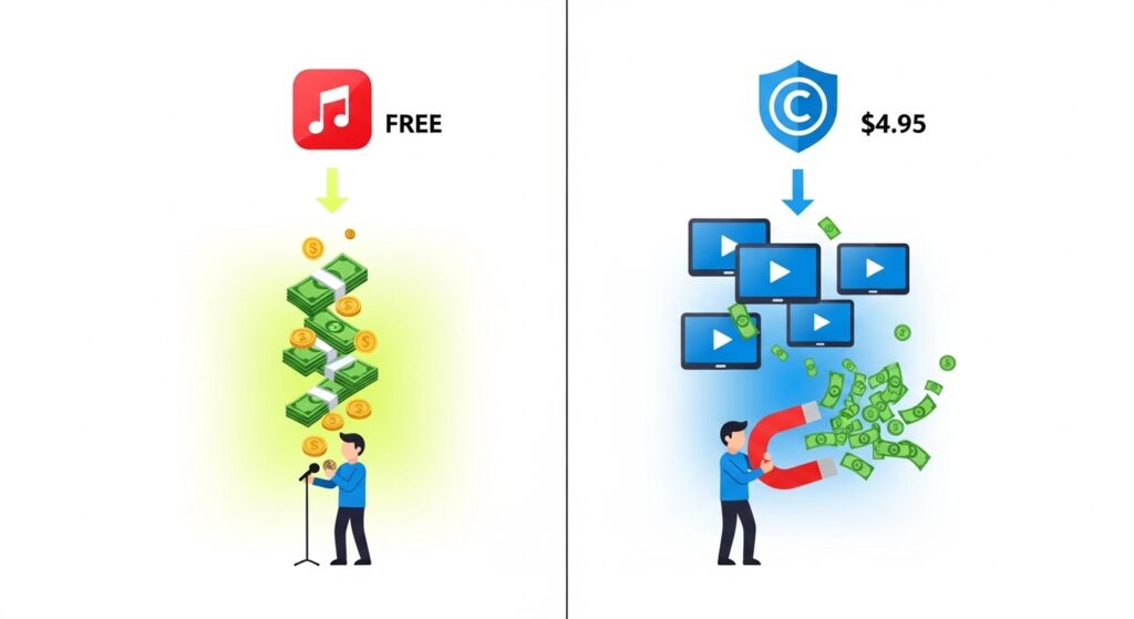 「自分の動画だけで公開する」「まだ他人に使われる予定がない」という段階なら、この$4.95(約740円)を払う必要は全くありません。DistroKidなら、この「払わなくていい自由」があるのが最大のメリットです。